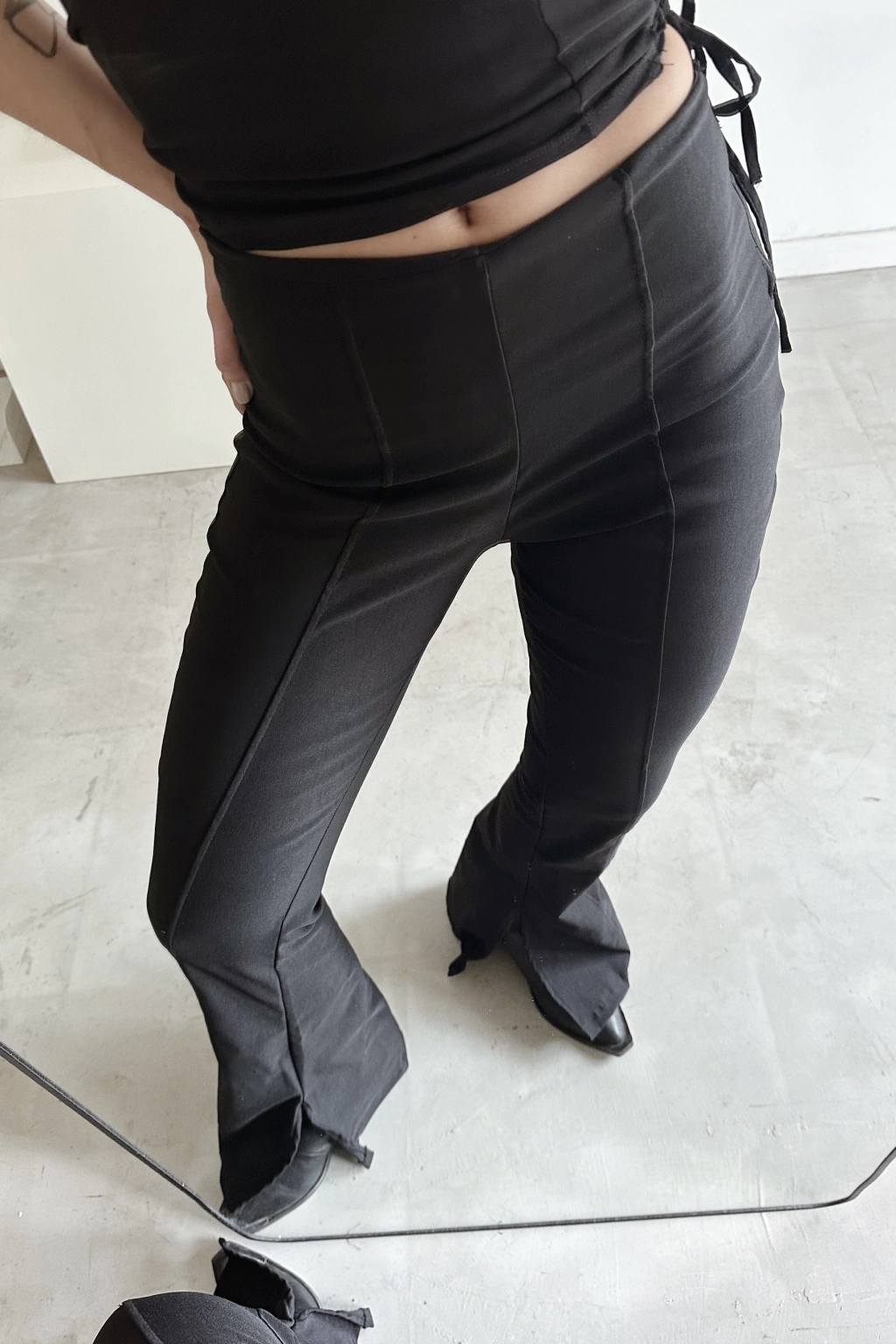 Pantalon super elastizado tiro alto al cuerpo con corte en botamanga. Confeccionado en bengalina premium. Cuenta con cierre invisible lateral.