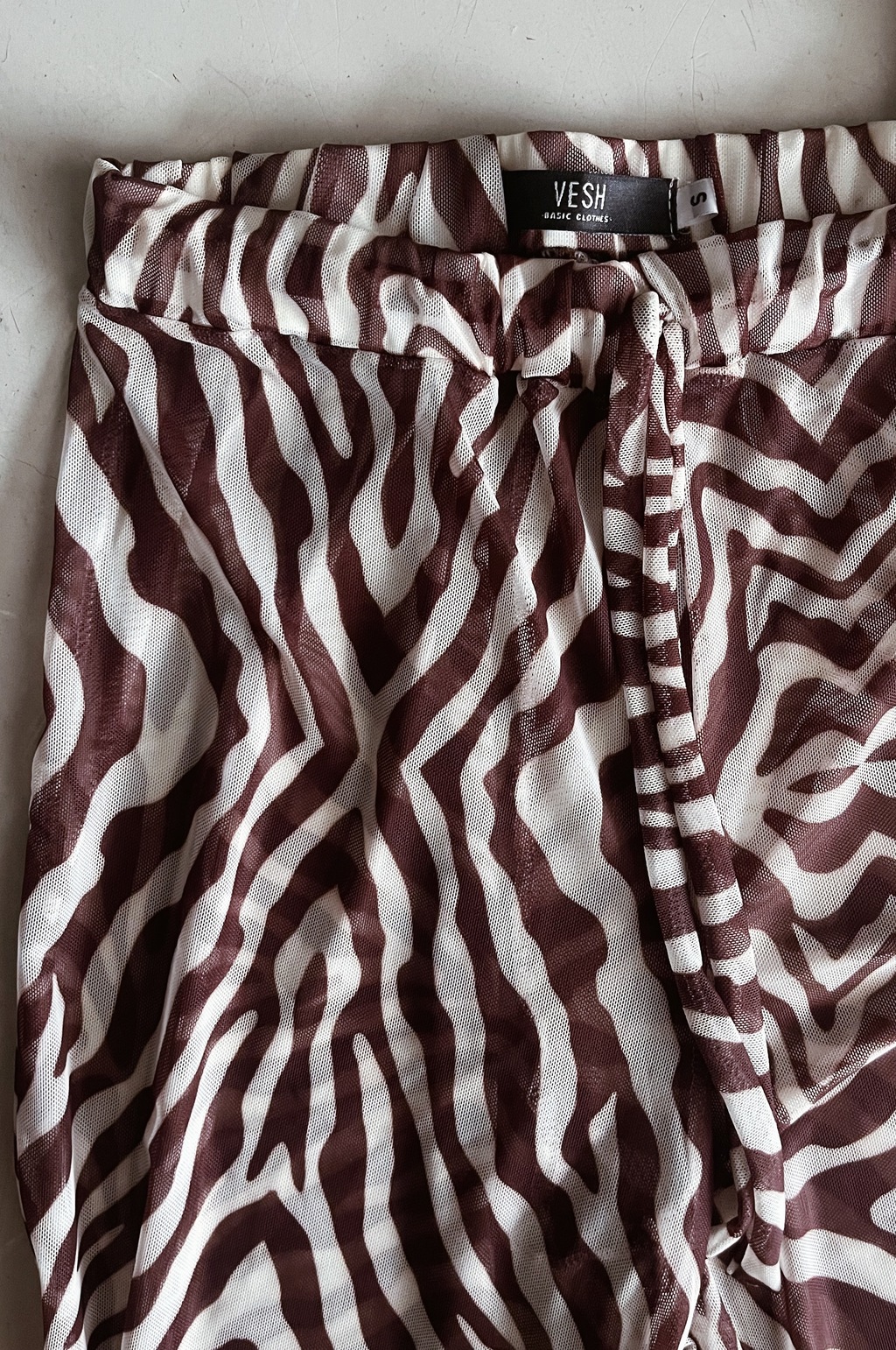 Confeccionado en tull doble rebote estampado. Con elastico en la cintura y tirita para regular. Tambien cuenta con un pequeño tajo en los laterales de la botananga.