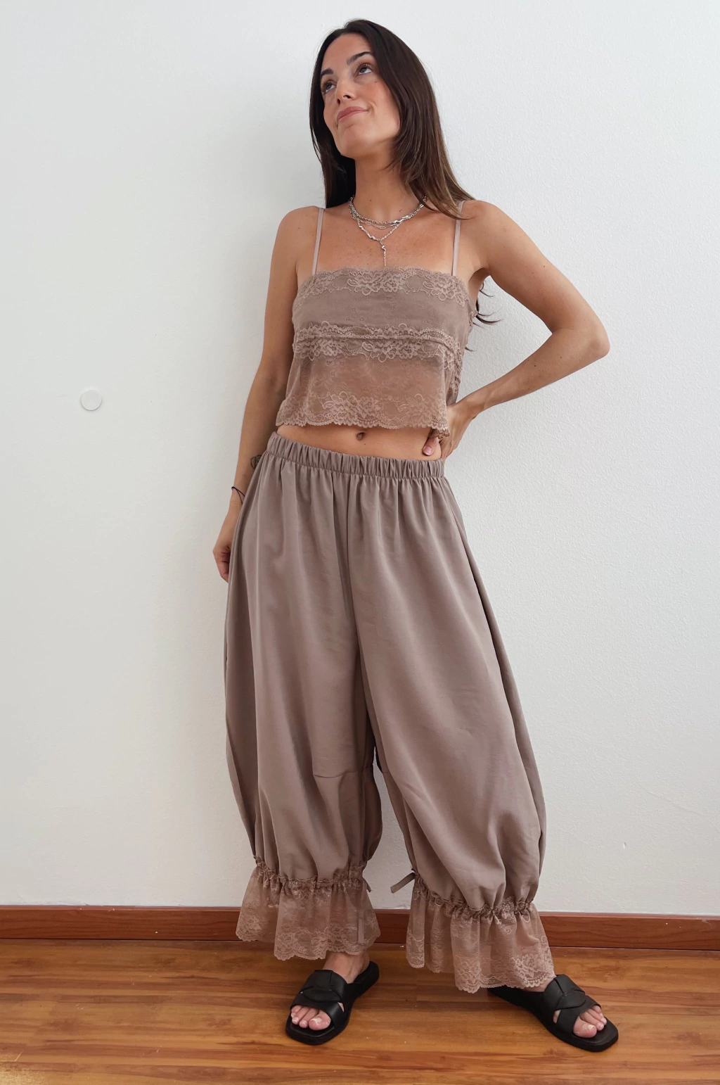 Top confeccionado en puntilla de calidad premium. Forrado por delante con tela a tono. Breteles elasticos regulables. El top es elastizado.